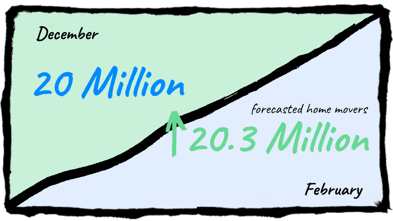 We pulled our numbers again and it looks like 20.3 million folks plan to move this year even with all the chatter and worry about interest rates. Ok, so 300,000 more people than a month ago. Maybe we are seeing a bit of optimism, or more likely impatience, with movers in 2025.