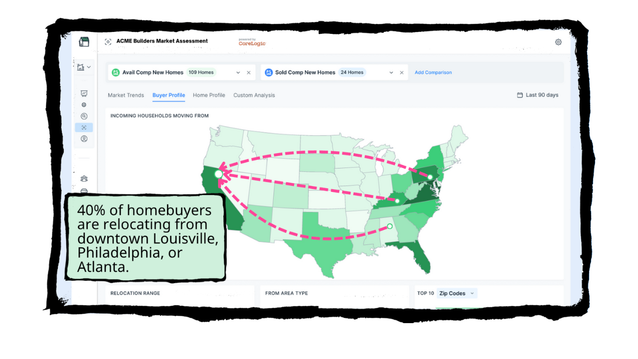Builders are no longer flying blind. Market Assessment Bundle shows you who is moving in your competitive market, where they’re moving from, what they’re buying, and why they’re buying it.